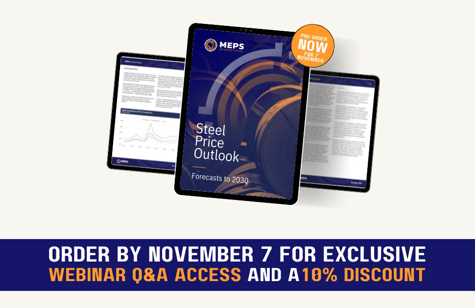 A 10% discount and access to a free interactive webinar are being offered with all pre-orders of the MEPS Steel Price Outlook 2025 report.