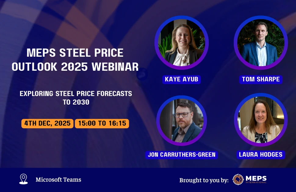 MEPS rescheduled its Steel Price Outlook webinar due to popular demand and will now host the online event at 3pm on December 4. Attendees will hear discussion from MEPS’s head of price analysis and forecasts, Kaye Ayub, and market analysts Jon Carruthers-Green and Laura Hodges, prior to a live Q&A session.
